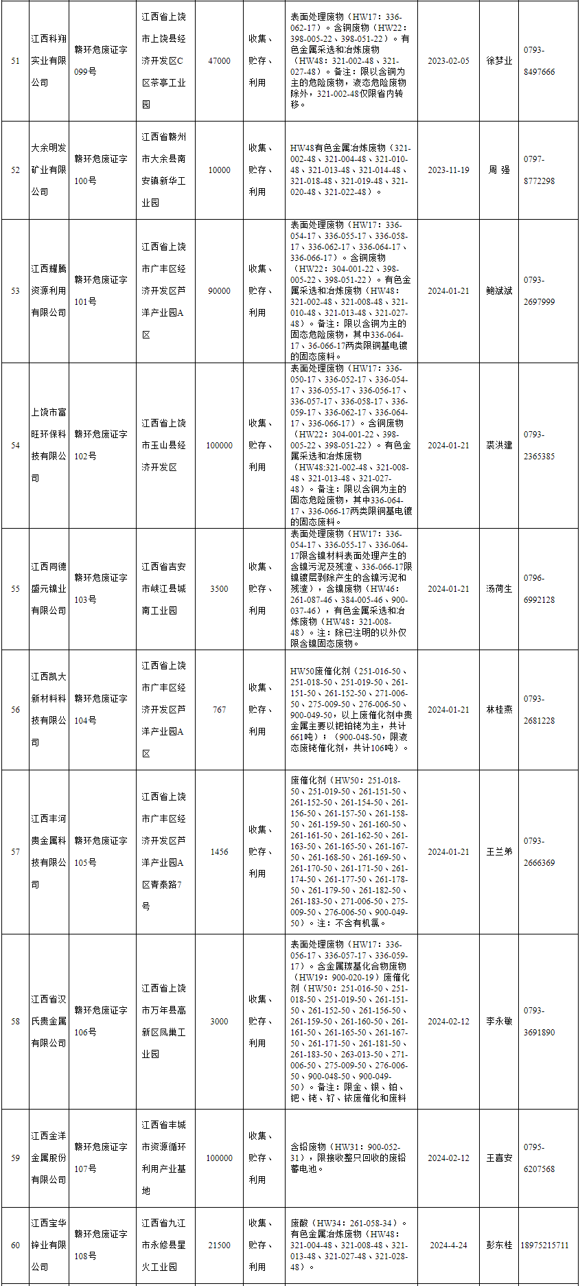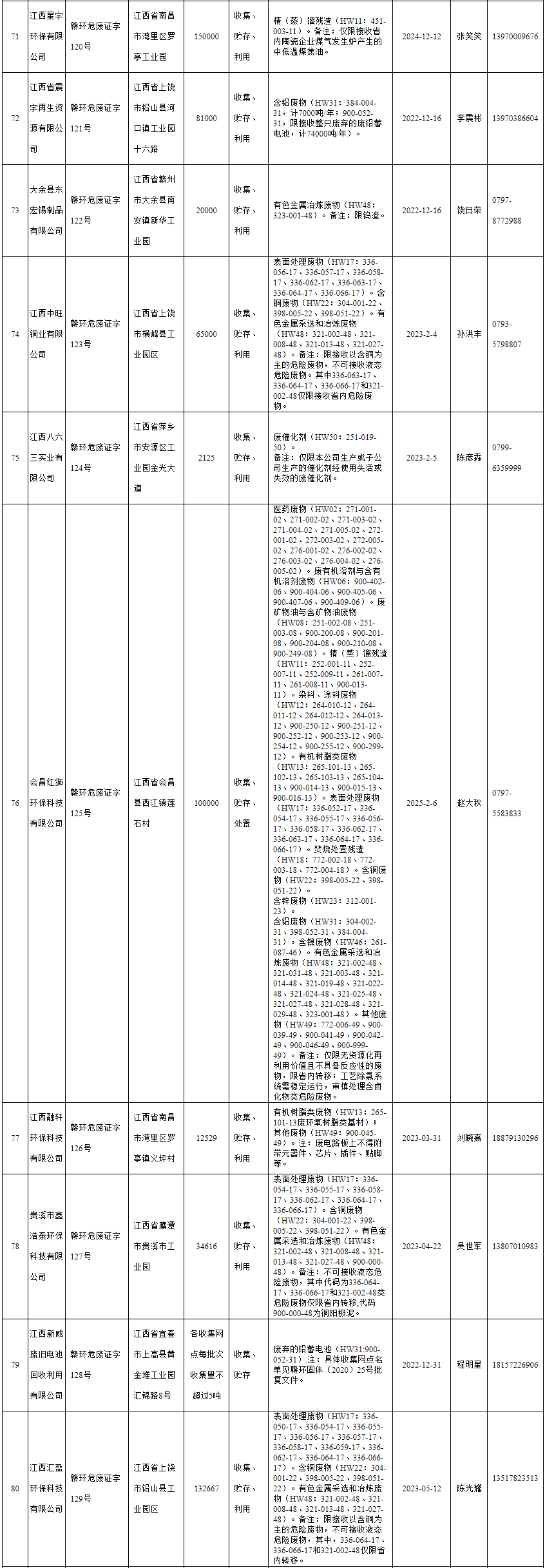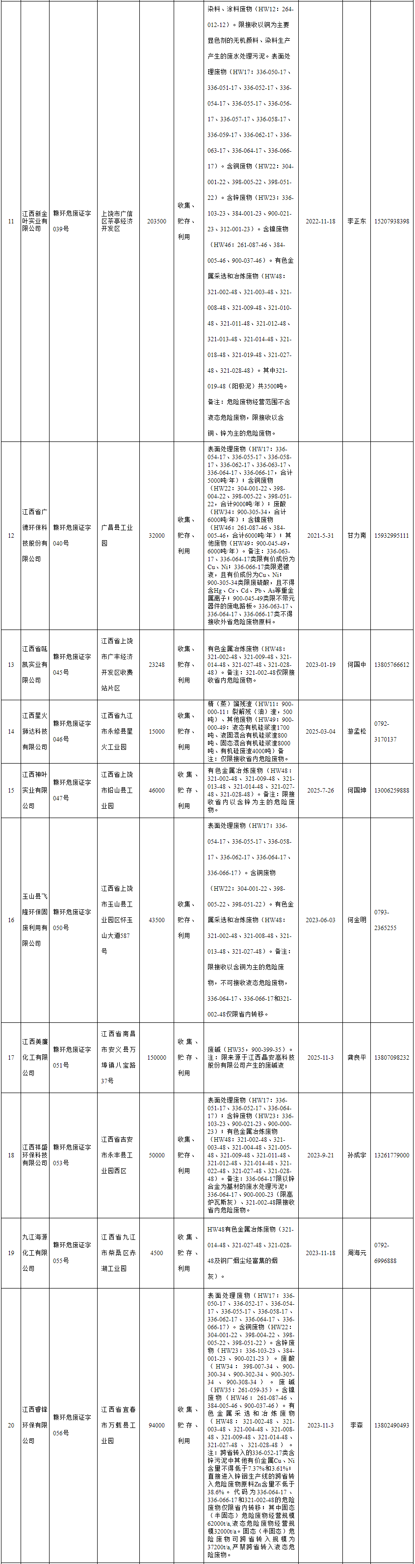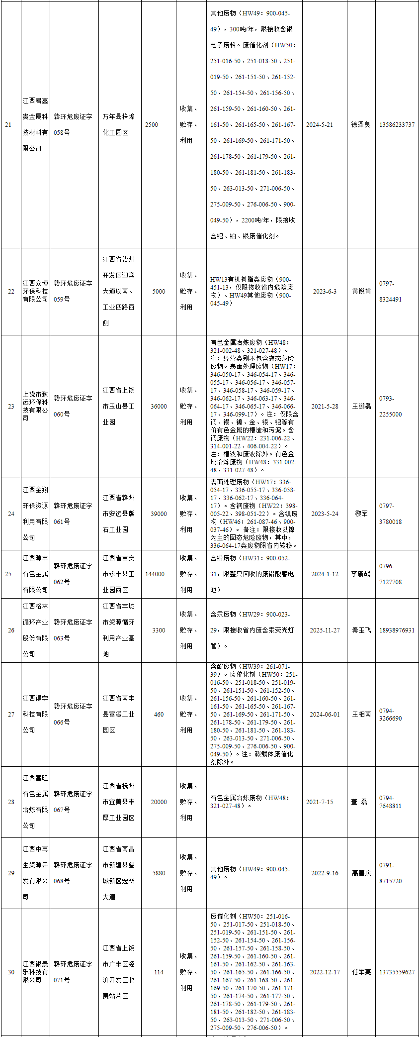 江西省《危險廢物經(jīng)營許可證》持證單位名單(省廳審批)
