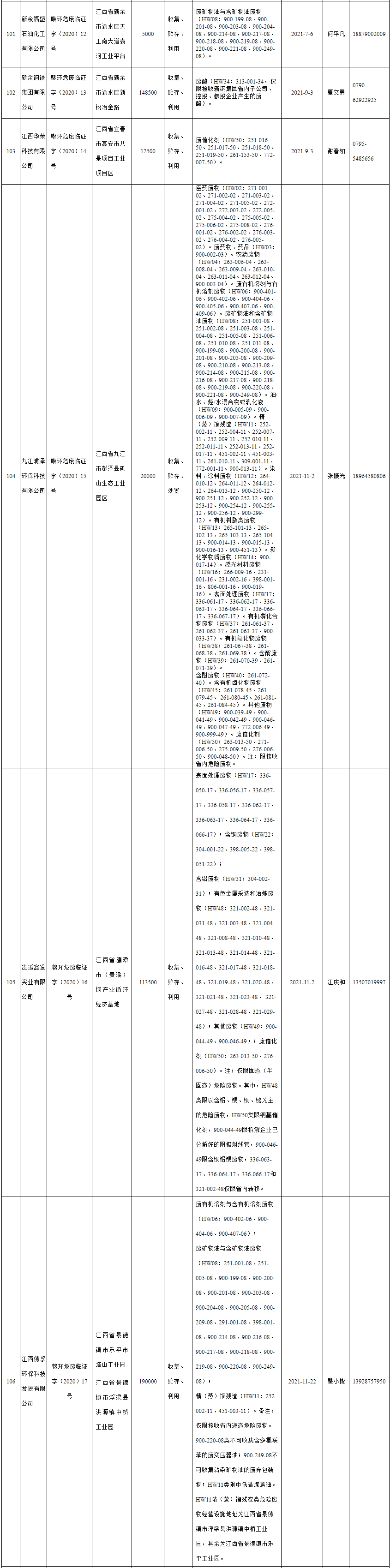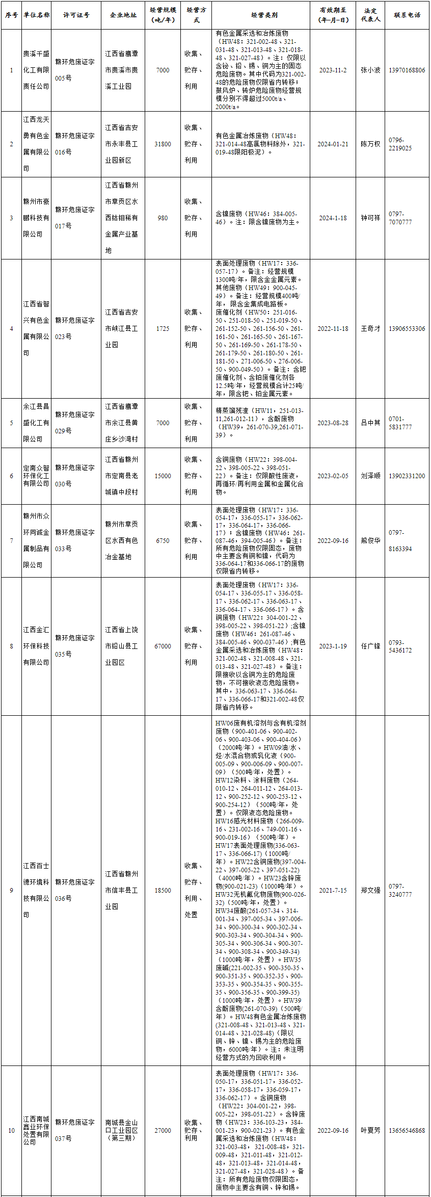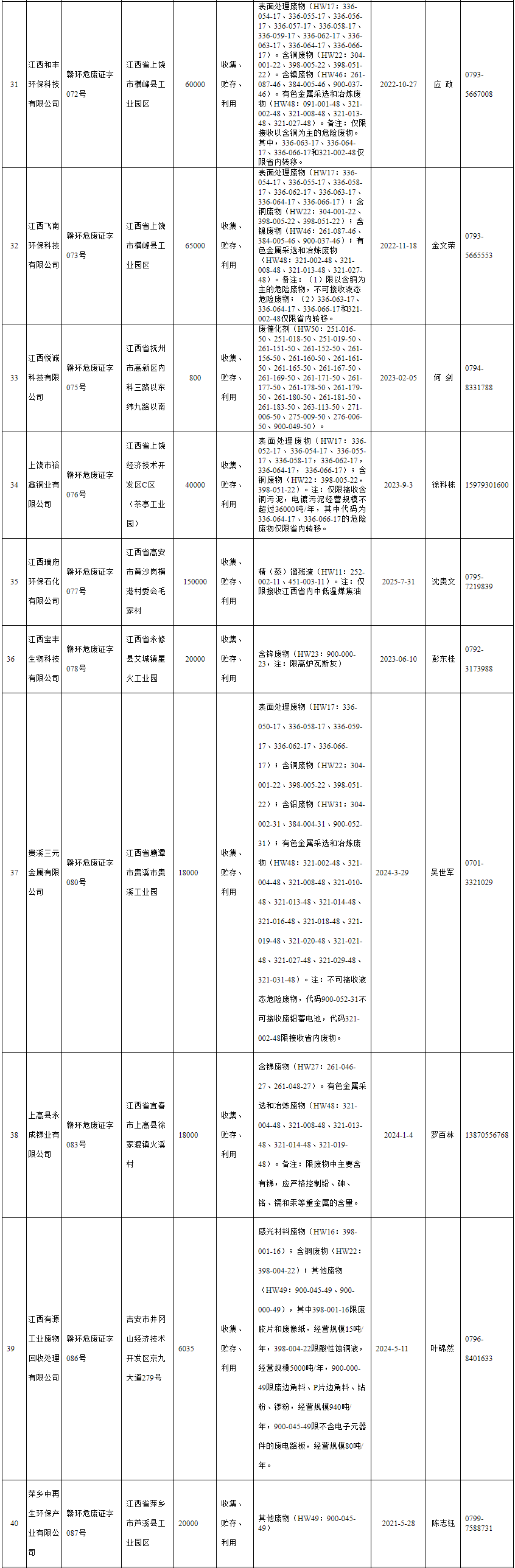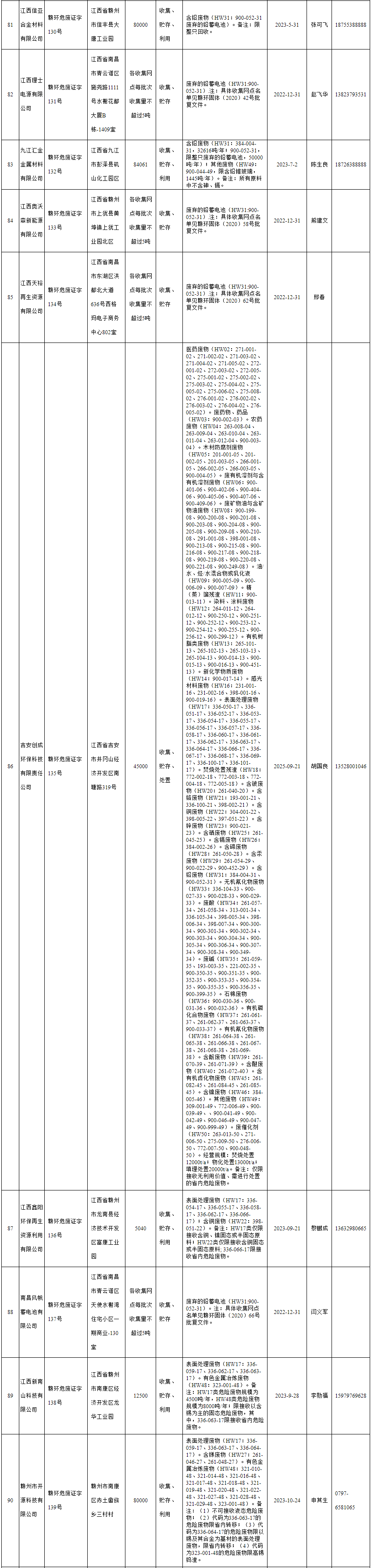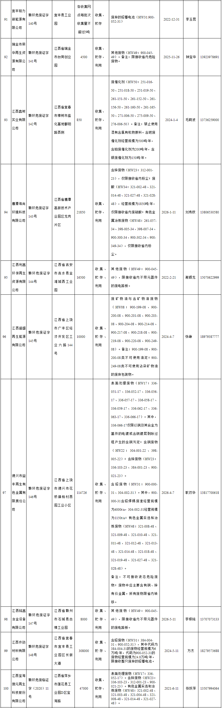 江西省《危險廢物經(jīng)營許可證》持證單位名單(省廳審批)