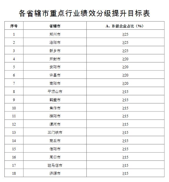 —鄭州市、洛陽市、新鄉(xiāng)市績效分級A、B級企業(yè)力爭達到25%以上;開封市、安陽市、許昌市、南陽市績效分級A、B級企業(yè)力爭達到20%以上;平頂山市、鶴壁市、焦作市、濮陽市、漯河市、三門峽市、商丘市、信陽市、周口市、駐馬店市、濟源市績效分級A、B級企業(yè)力爭達到15%以上。(見附件2)大牛工程師