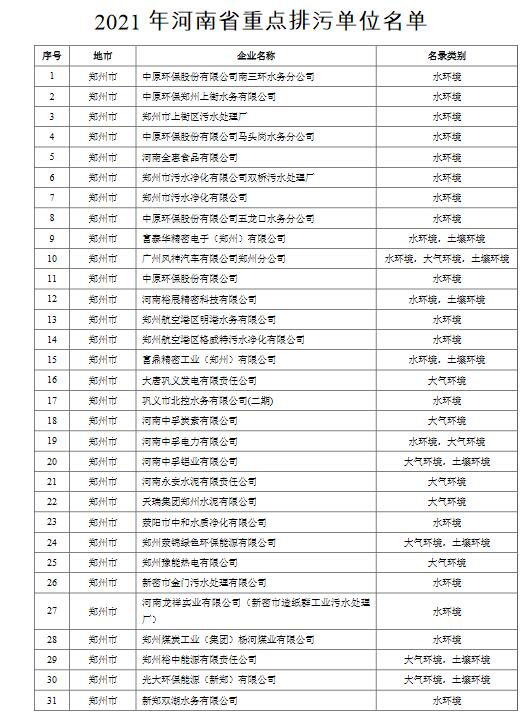 日前,河南公布2021年重點(diǎn)排污單位名單。涉及大氣環(huán)境、水環(huán)境等重點(diǎn)排污單位共2783家。詳情如下: