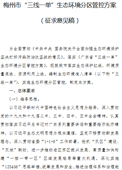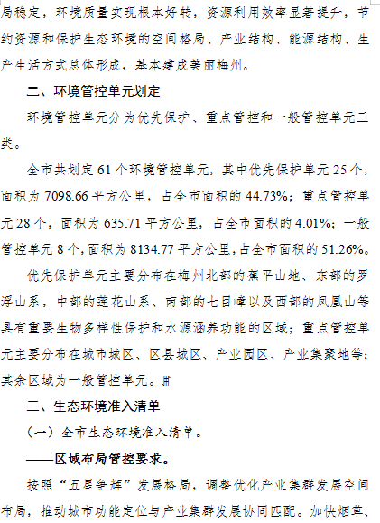 《梅州市“三線一單”生態(tài)環(huán)境分區(qū)管控方案(征求意見稿)》