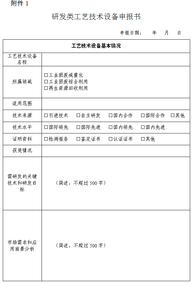 附件1:研發(fā)類工藝技術(shù)設(shè)備申報(bào)書