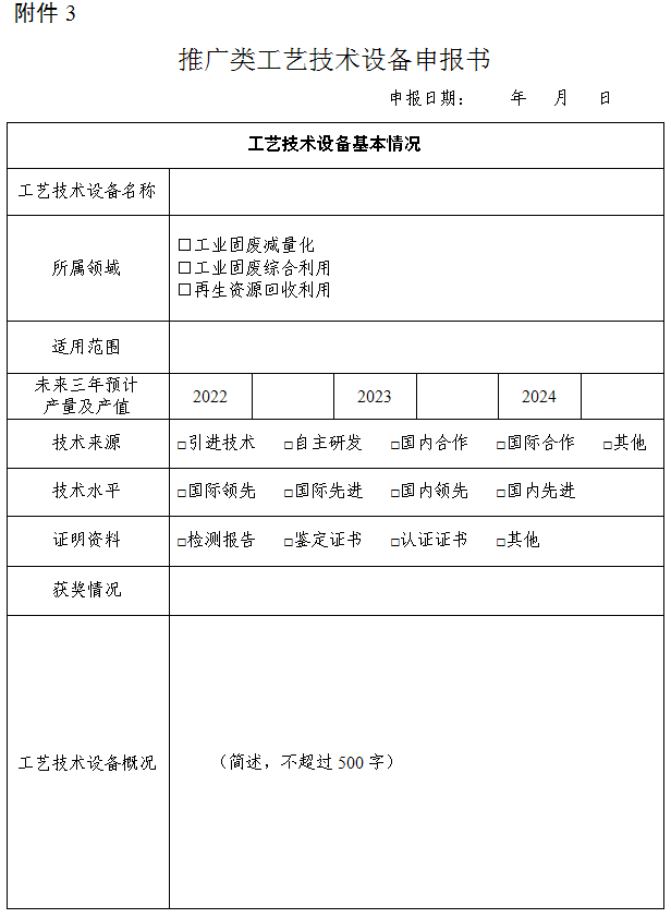 附件3:推廣類工藝技術(shù)設(shè)備申報(bào)書