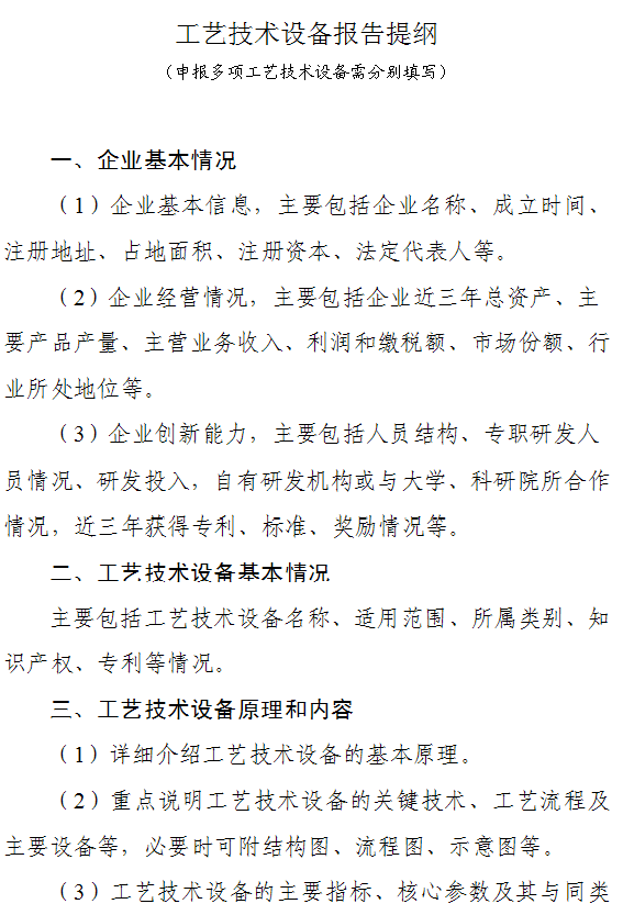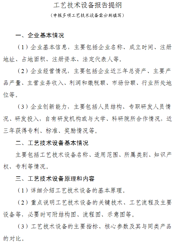附件4:工藝技術(shù)設(shè)備申報(bào)表