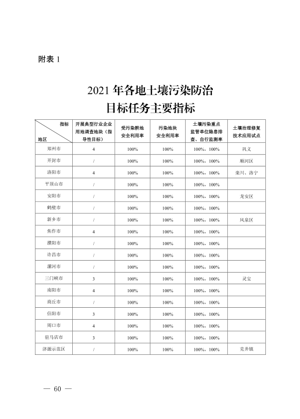 附表:1. 2021 年各地土壤污染防治目標(biāo)任務(wù)
