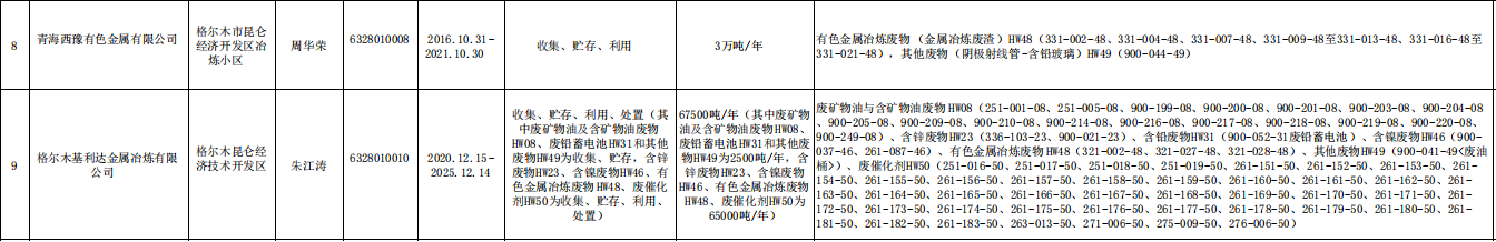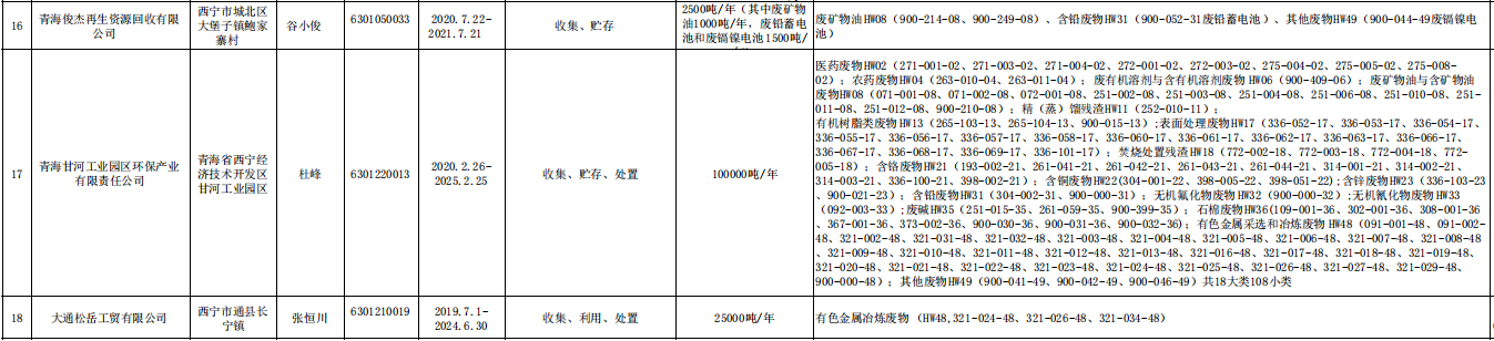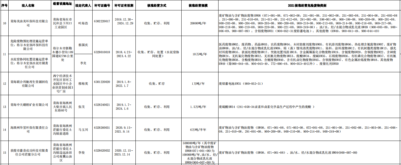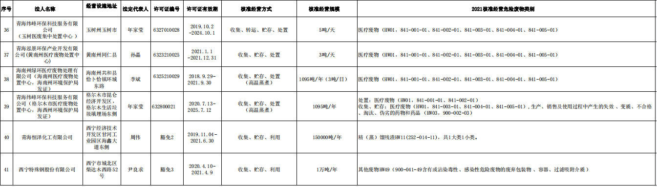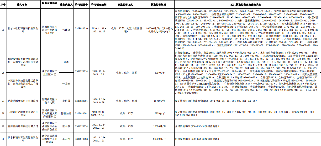 《青海省危險廢物經(jīng)營單位清單(包括豁免經(jīng)營許可證的危險廢物經(jīng)營單位)2021.4.30》