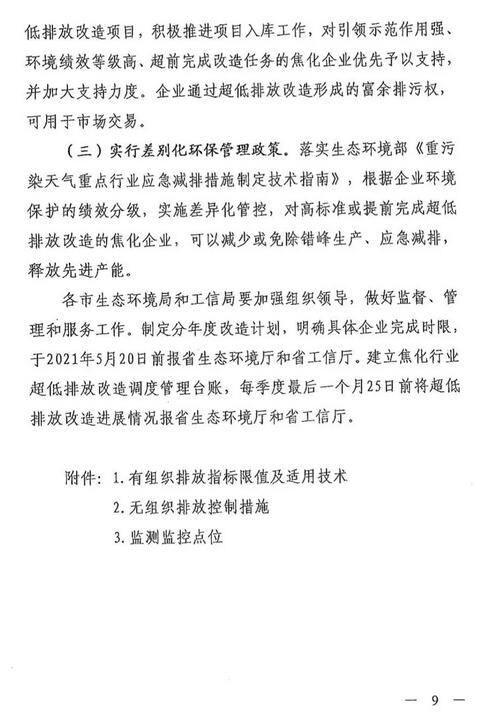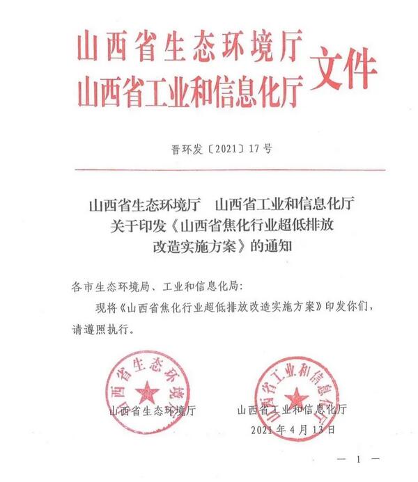 《 山西省焦化企業(yè)全面完成超低排放改造》(晉環(huán)發(fā)【2021】17號(hào))