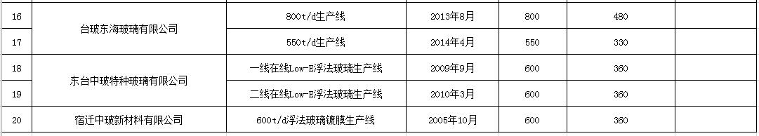 江蘇省平板玻璃生產(chǎn)線清單