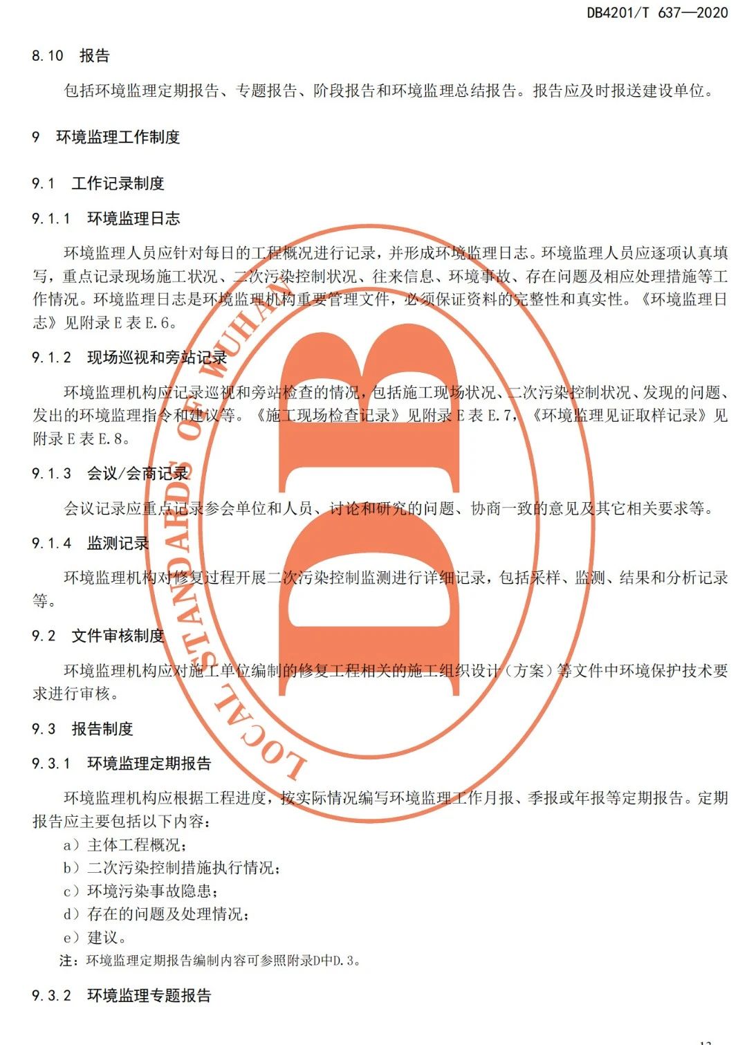 《武漢市污染地塊修復工程環(huán)境監(jiān)理技術(shù)規(guī)范》