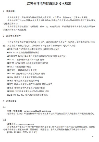 《江蘇省環(huán)境與健康監(jiān)測(cè)技術(shù)規(guī)范(征求意見(jiàn)稿)》