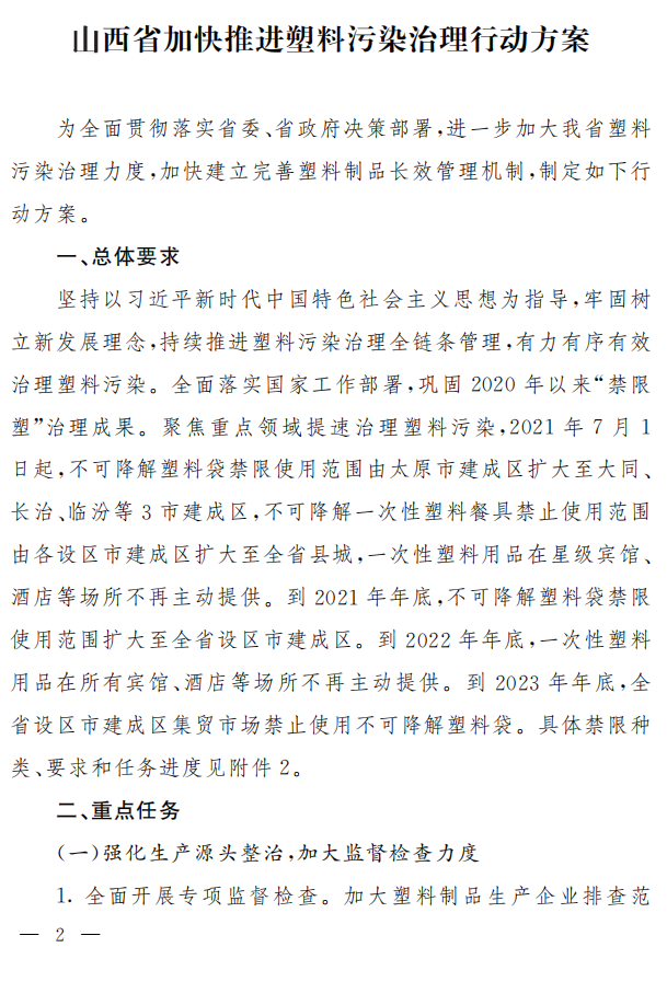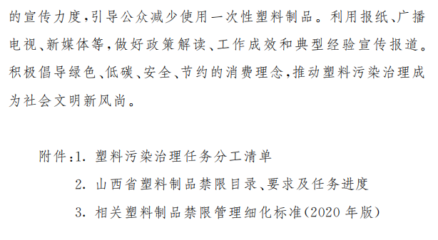 《山西省加快推進(jìn)塑料污染治理行動(dòng)方案》