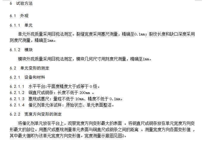 產(chǎn)品單元外觀應(yīng)符合表1的規(guī)定。《水泥工業(yè)用蜂窩式低溫?zé)煔饷撓醮呋瘎穮f(xié)會(huì)標(biāo)準(zhǔn)(征求意見稿)