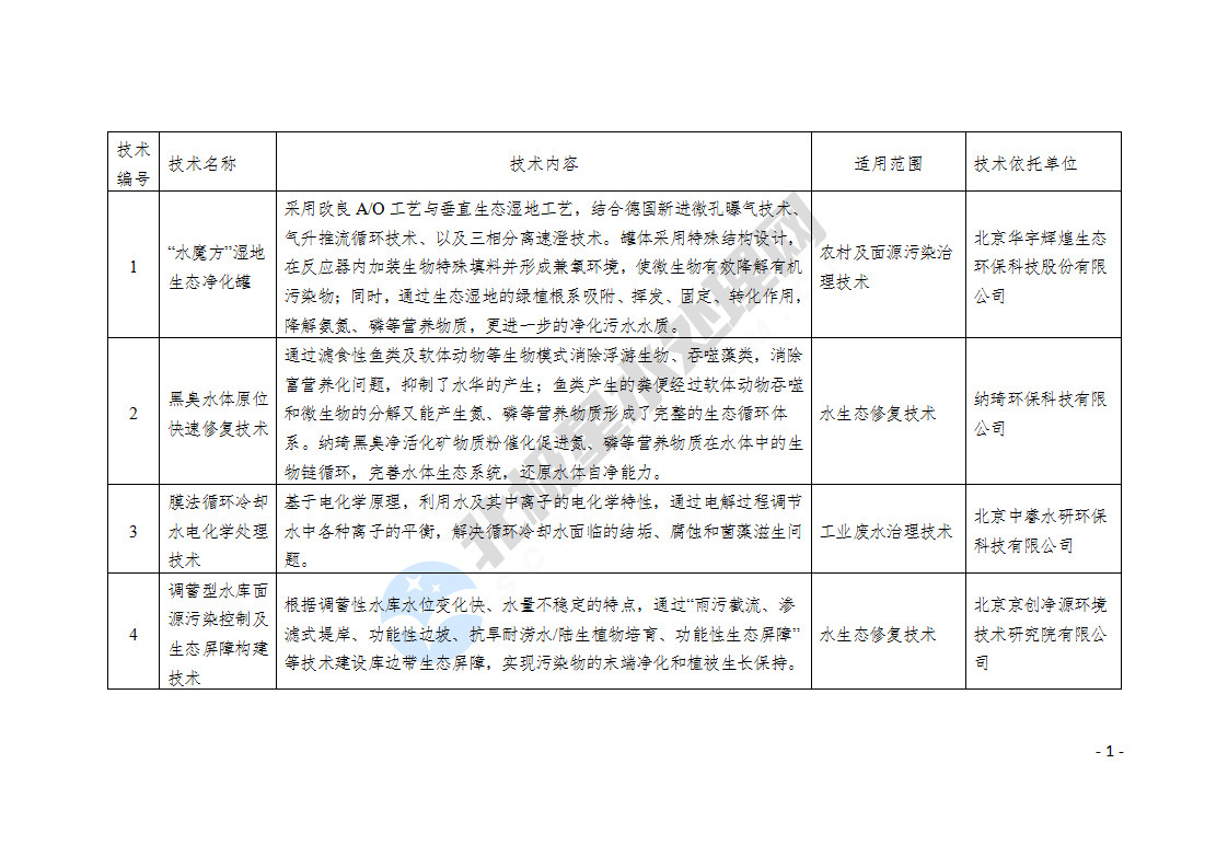 《北京市水污染防治技術(shù)目錄(2020年版)》