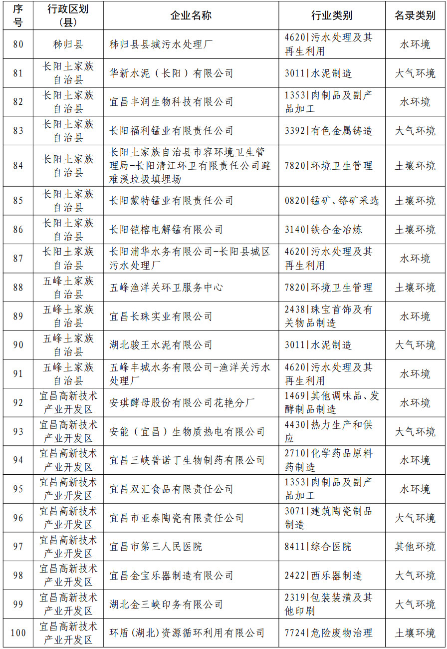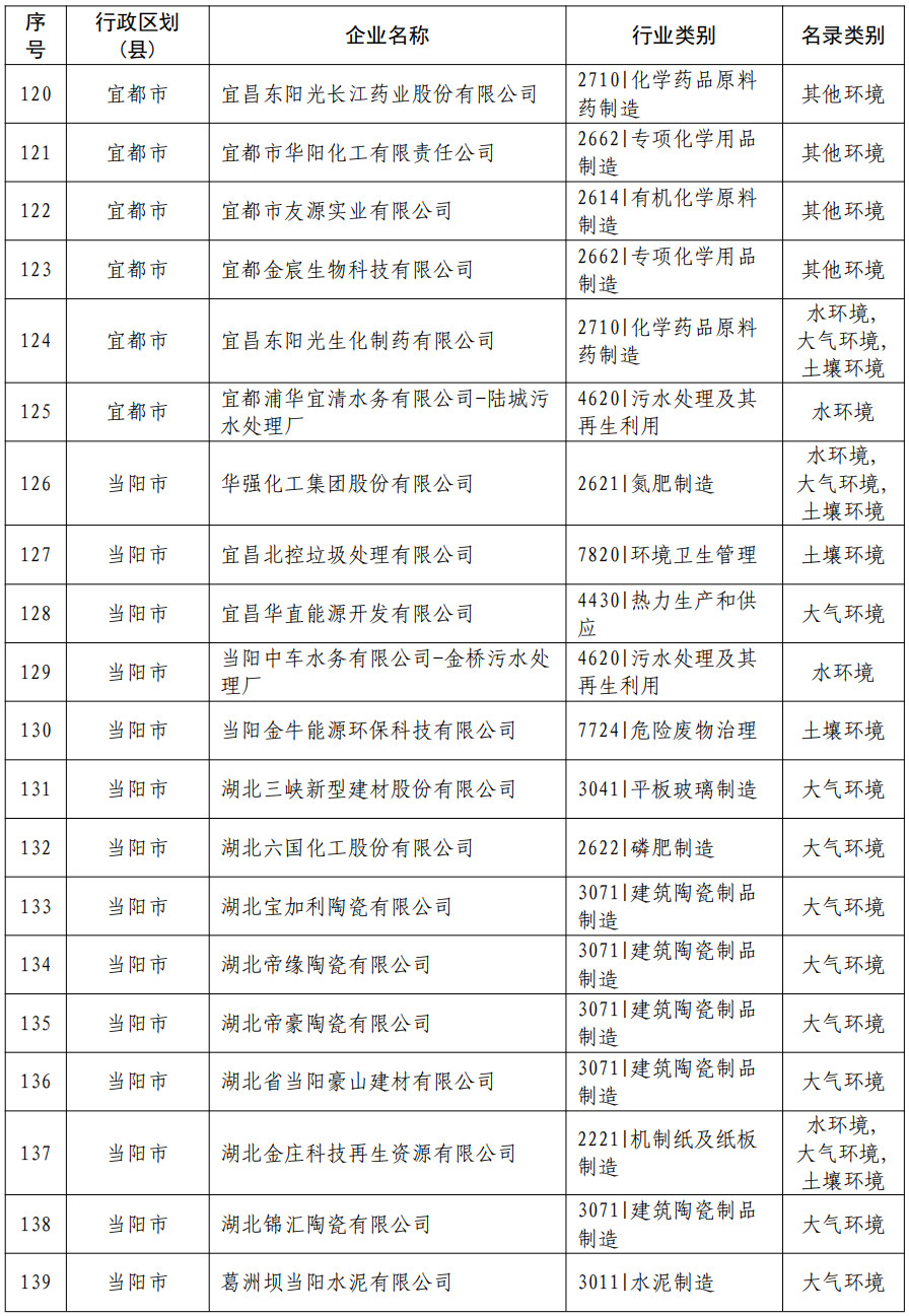 《2021年湖北省宜昌市重點(diǎn)排污單位名錄》(宜市環(huán)發(fā)[2021]1號(hào))