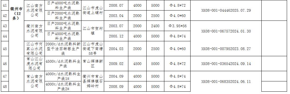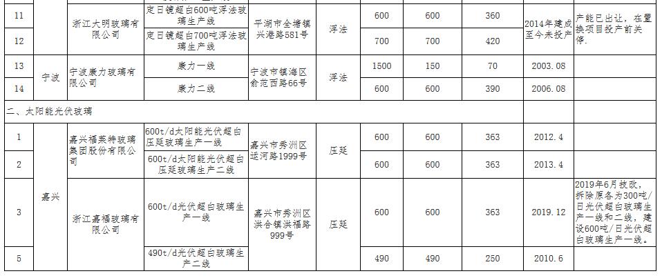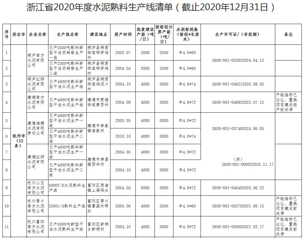《2020年度浙江省水泥熟料平板玻璃生產(chǎn)清單》