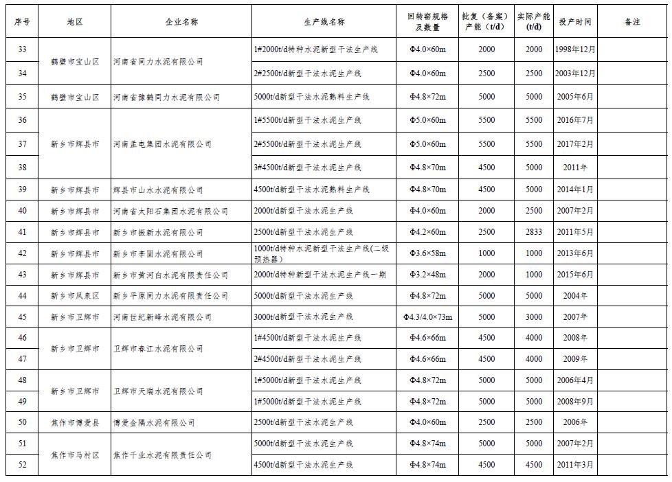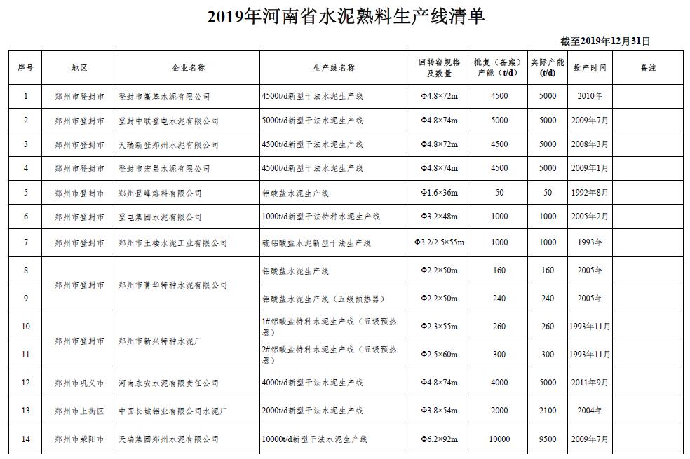 《2019年河南省水泥熟料和平板玻璃生產(chǎn)線清單》
