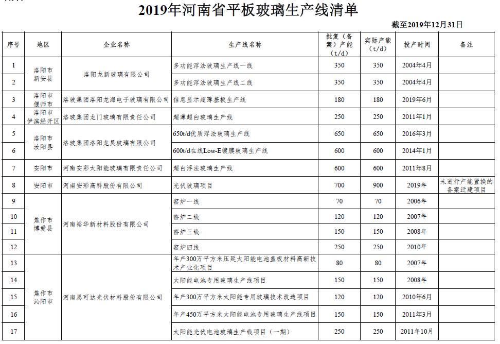 近日,河南公布2019年河南省水泥熟料和平板玻璃生產(chǎn)線清單。