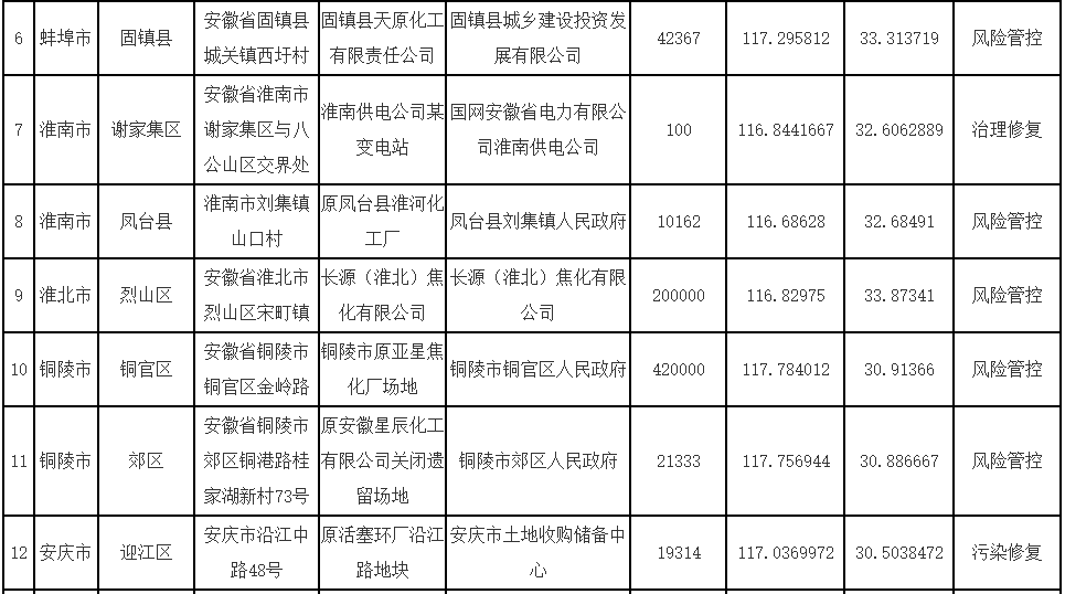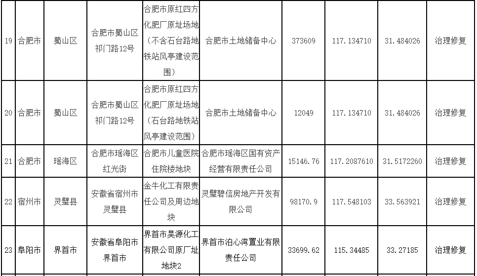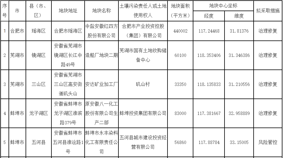 安徽省生態(tài)環(huán)境廳、安徽省自然資源廳關(guān)于更新《安徽省建設(shè)用地土壤污染風(fēng)險(xiǎn)管控和修復(fù)名錄》的公告