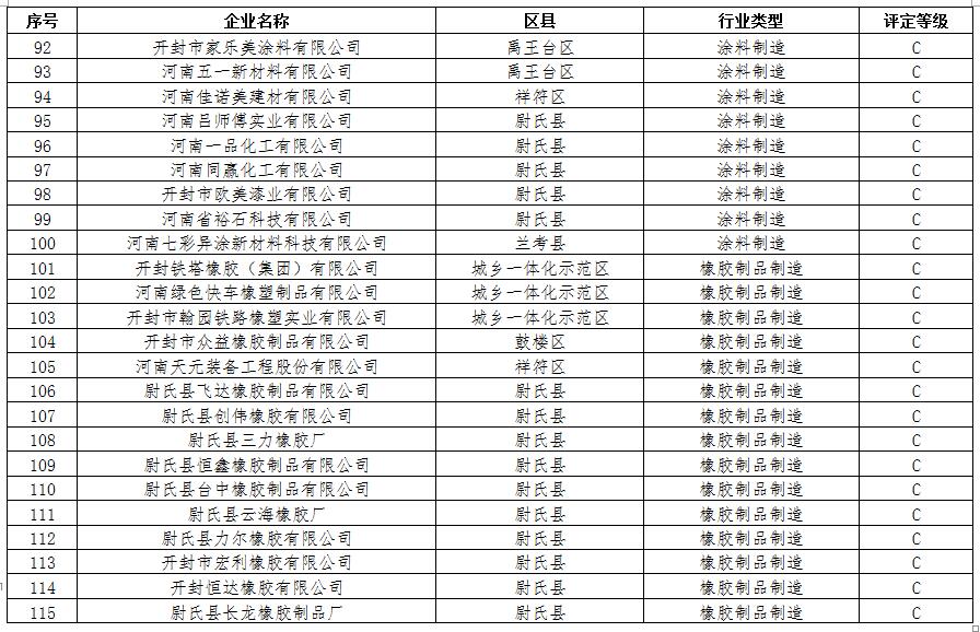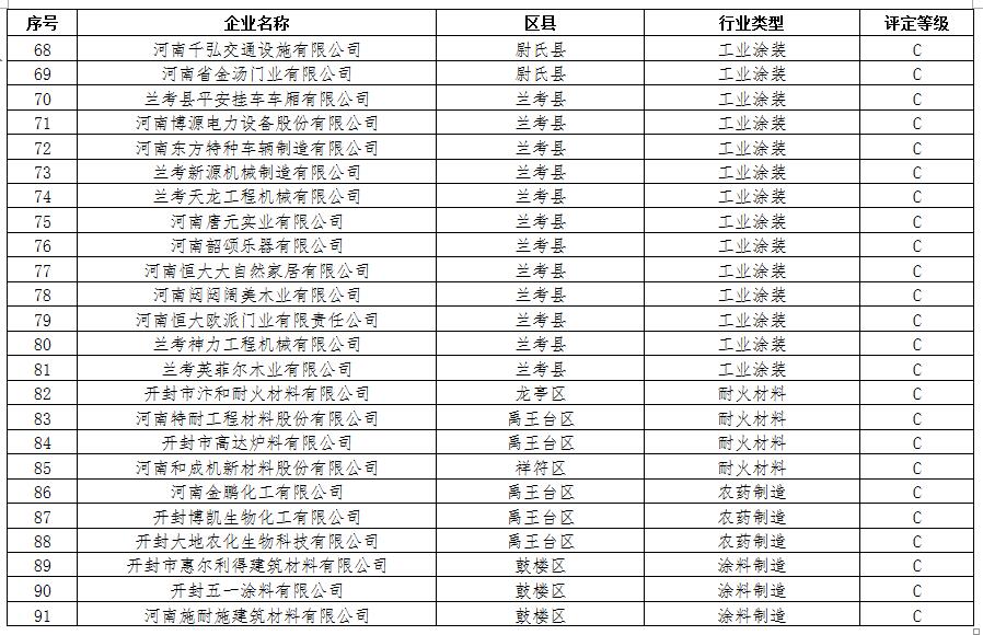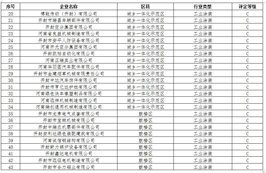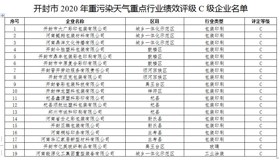 《開封市2020年重污染天氣重點(diǎn)行業(yè)績效評級C級企業(yè)名單》