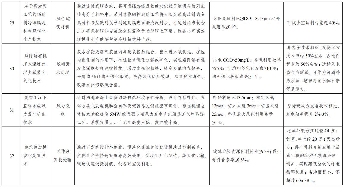 《目錄》分別收錄節(jié)能環(huán)保產(chǎn)業(yè)63項(xiàng)、清潔生產(chǎn)產(chǎn)業(yè)26項(xiàng)、清潔能源產(chǎn)業(yè)15項(xiàng)、生態(tài)環(huán)境產(chǎn)業(yè)4項(xiàng)及基礎(chǔ)設(shè)施綠色升級(jí)8項(xiàng),并對(duì)各項(xiàng)的技術(shù)名稱、適用范圍、核心技術(shù)及工藝、主要技術(shù)參數(shù)和綜合效益等方面作出明確規(guī)定。