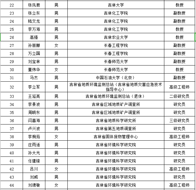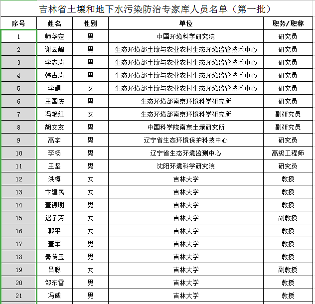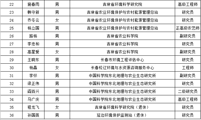 《吉林省土壤和地下水污染防治及農(nóng)村生態(tài)環(huán)境保護(hù)領(lǐng)域?qū)<規(guī)烊藛T名單(第一批)》
