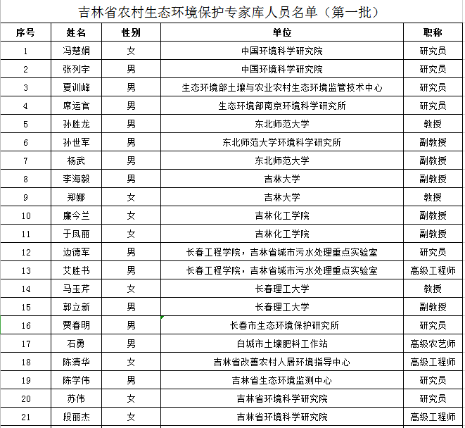 2.吉林省農(nóng)村生態(tài)環(huán)境保護(hù)領(lǐng)域?qū)<規(guī)烊藛T名單(第一批)