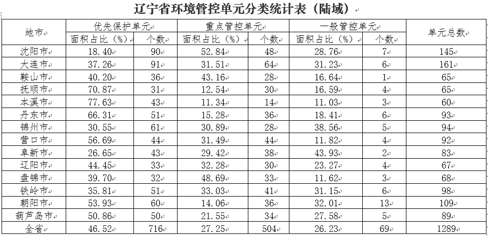 附表:遼寧省環(huán)境管控單元分類統(tǒng)計表