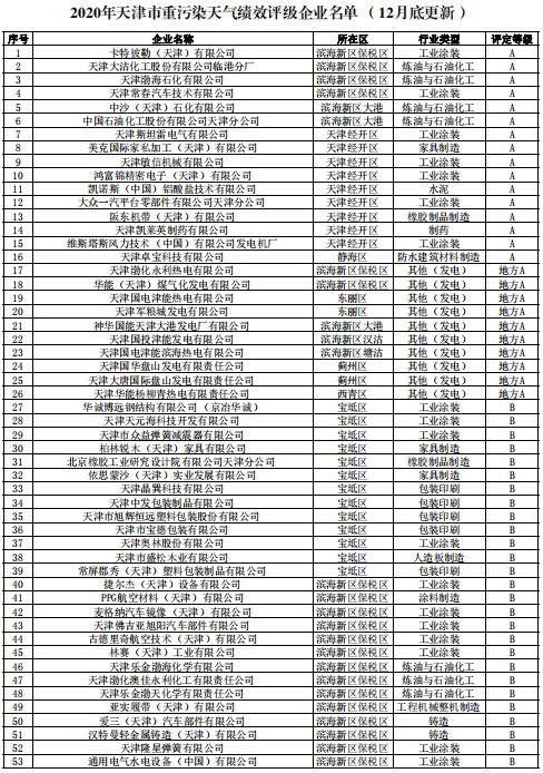 1.2020年天津市重污染天氣績效評級企業(yè)名單(12月底更新)