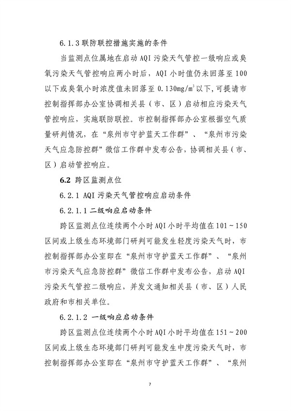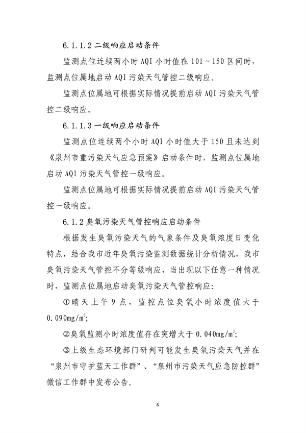 本方案適用于當(dāng)空氣質(zhì)量指數(shù)(AQI)小時(shí)值75~200、臭氧小時(shí)濃度值上午9時(shí)大于0.090mg/m3(或臭氧小時(shí)濃度值突增大于0.040mg/m3)及上級(jí)生態(tài)環(huán)境部門研判可能發(fā)生污染天氣并在“泉州市守護(hù)藍(lán)天工作群”、“泉州市污染天氣應(yīng)急防控群”微信工作群中發(fā)布公告等情況時(shí),各縣(市、區(qū))人民政府、市相關(guān)部門開展的輕中度污染天氣控制工作。