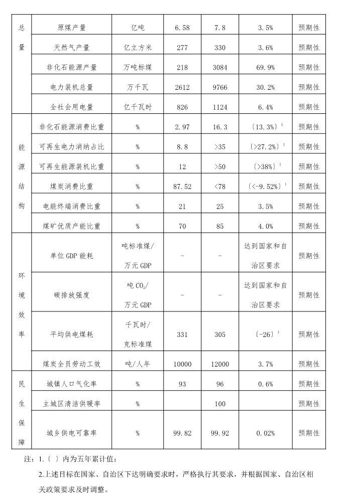 能源消費強度、二氧化碳排放強度達到國家、自治區(qū)相關(guān)要求。到2025年,火電機組平均供電煤耗降至305克標(biāo)煤/千瓦時以下,煤炭全員勞動工效力爭超過12000噸/人年,全面建成綠色智能化煤礦。