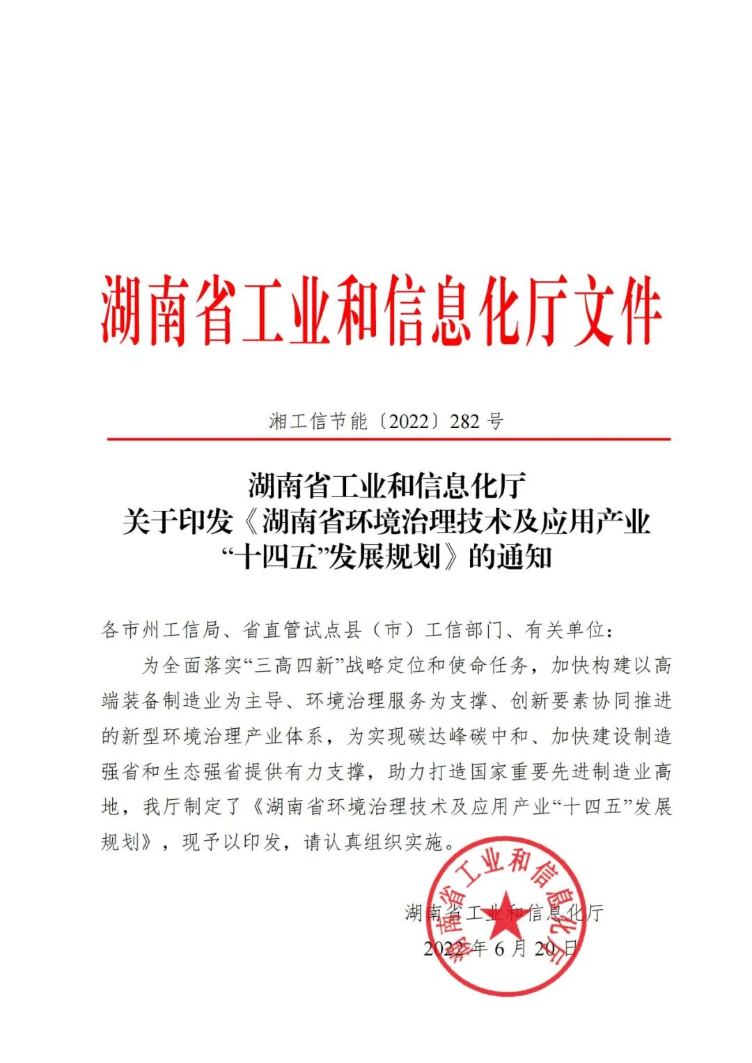 《湖南省環(huán)境治理技術(shù)及應(yīng)用產(chǎn)業(yè) “十四五”發(fā)展規(guī)劃》