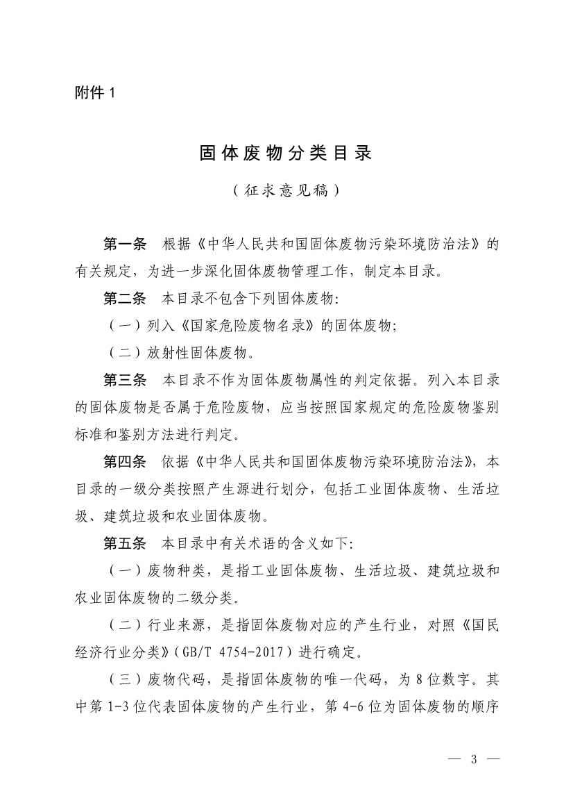 為貫徹落實《中華人民共和國固體廢物污染環(huán)境防治法》,更好支撐固體廢物的規(guī)范化、精細(xì)化、信息化管理,生態(tài)環(huán)境部組織編制了《固體廢物分類目錄(征求意見稿)》。現(xiàn)公開征求意見。詳情如下: