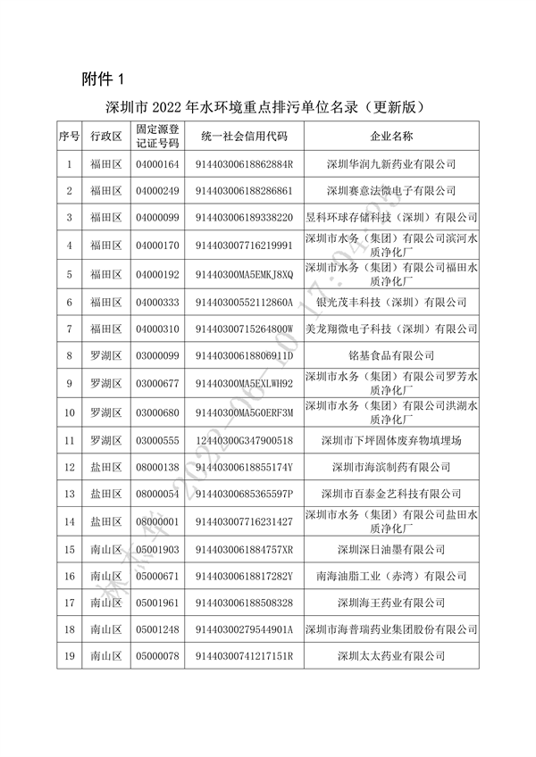 《深圳市2022年重點排污單位名錄(更新版)》