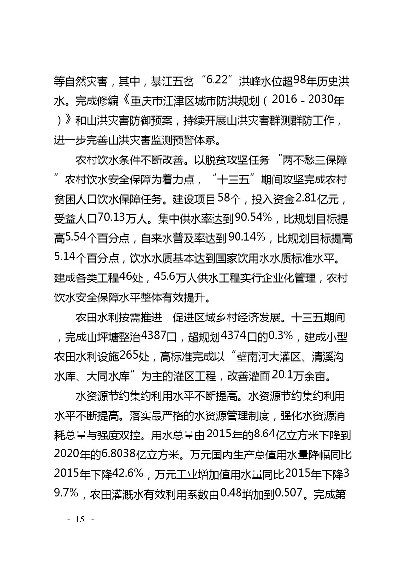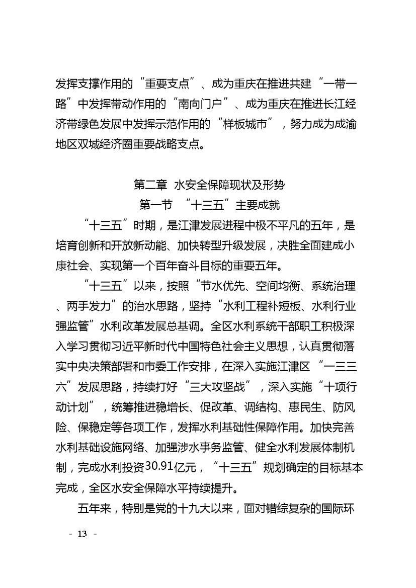 重慶市江津區(qū)水安全保障“十四五”規(guī)劃(2021-2025年)