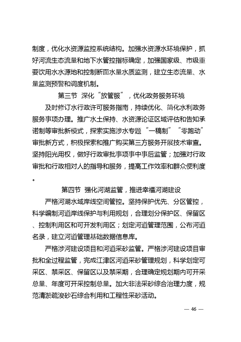 6月16日,重慶市江津區(qū)人民政府發(fā)布了《江津區(qū)水安全保障“十四五”規(guī)劃(2021-2025年)》(以下簡(jiǎn)稱《規(guī)劃》),旨在深入落實(shí)習(xí)近平總書記“節(jié)水優(yōu)先、空間均衡、系統(tǒng)治理、兩手發(fā)力”的治水思路,認(rèn)真踐行“水利工程補(bǔ)短板、水利行業(yè)強(qiáng)監(jiān)管”的總基調(diào),統(tǒng)籌做好水災(zāi)害防治、水資源節(jié)約、水生態(tài)保護(hù)修復(fù)、水環(huán)境治理,加快建設(shè)山清水秀美麗江津。