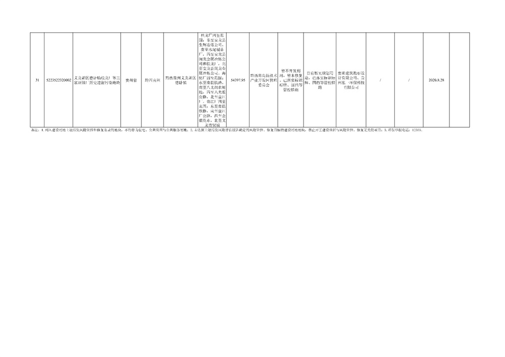 附件:1.貴州省建設(shè)用地土壤污染風(fēng)險(xiǎn)管控和修復(fù)名錄(2022年第二批)