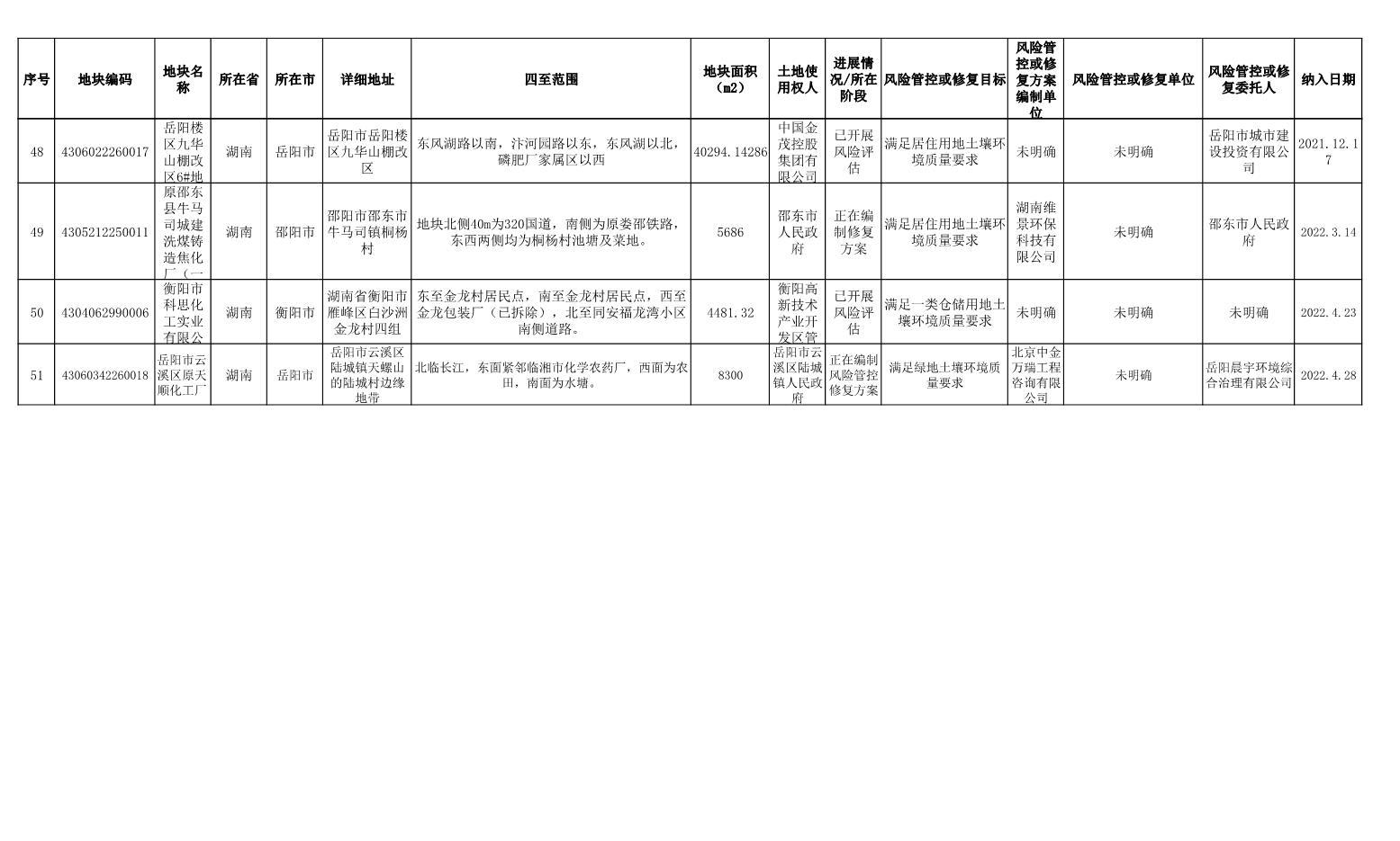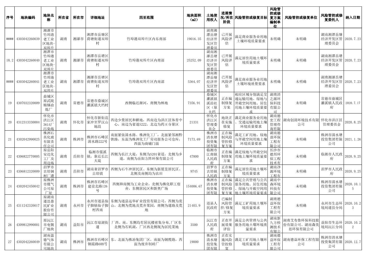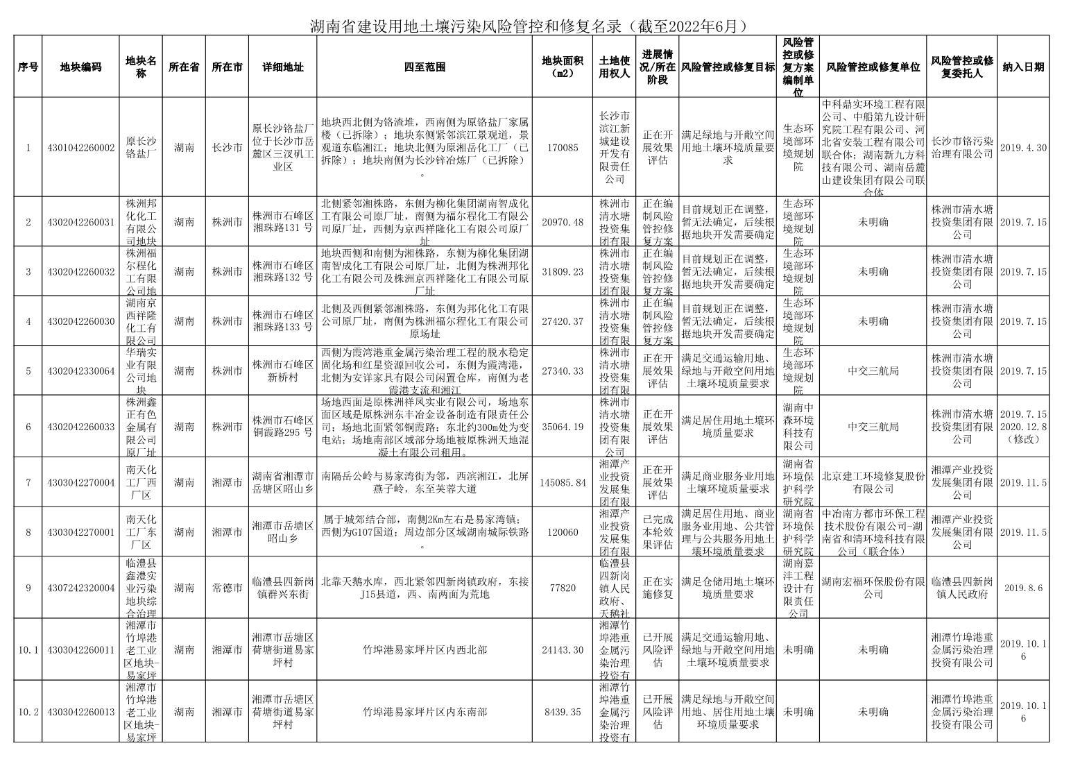 《湖南省建設(shè)用地土壤污染風(fēng)險(xiǎn)管控和修復(fù)名錄(截至2022年6月)》公布