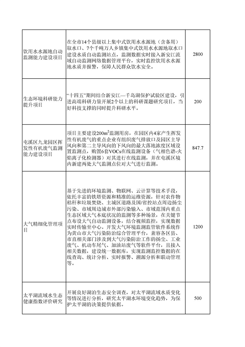 附件:黃山市“十四五”生態(tài)環(huán)境保護(hù)規(guī)劃項目庫