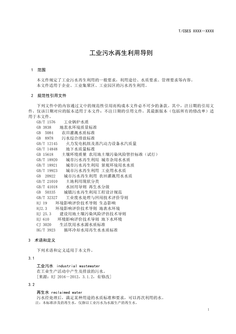 中國環(huán)境科學(xué)學(xué)會團體標準《工業(yè)污水再生利用導(dǎo)則(征求意見稿)》
