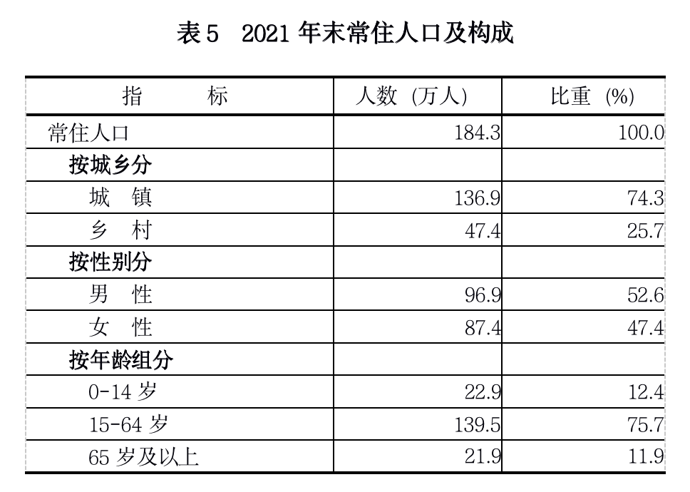 2021年末,全區(qū)戶籍人口83.5萬(wàn)人,比上年增長(zhǎng)1.8%。其中,農(nóng)業(yè)人口25.4萬(wàn)人,占總?cè)丝诘?0.5%;非農(nóng)業(yè)人口58萬(wàn)人,占總?cè)丝诘?9.5%。