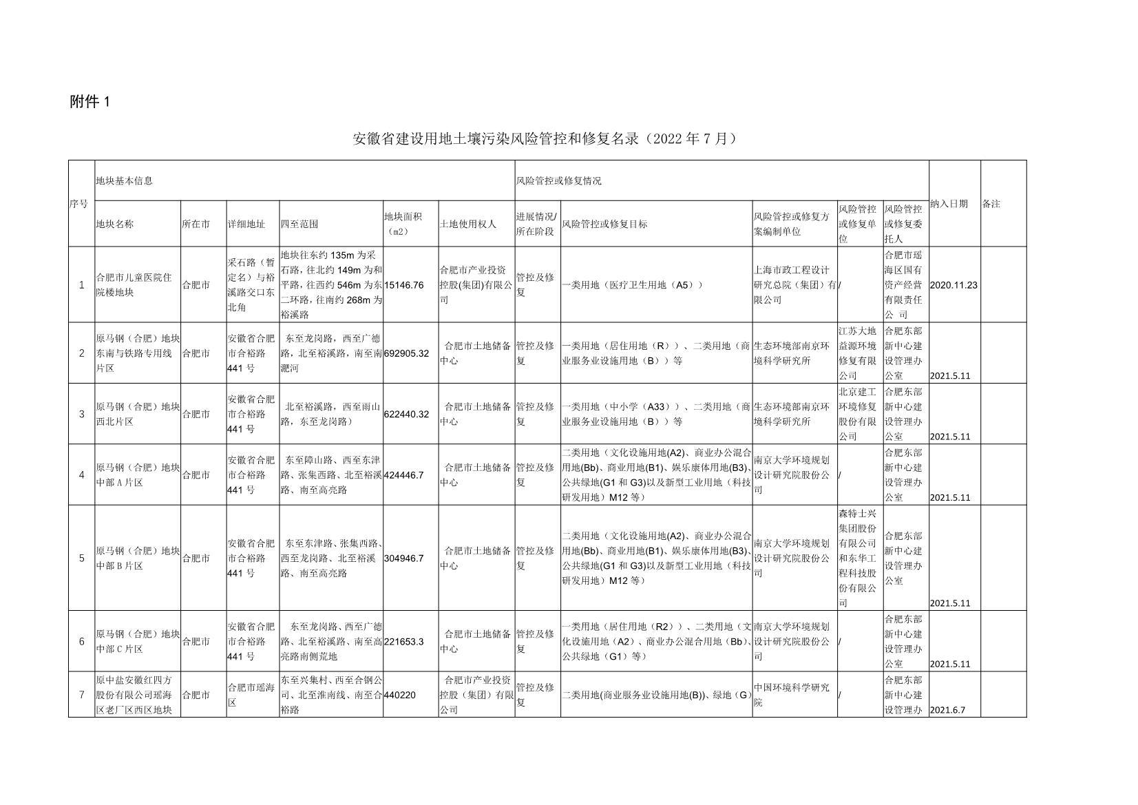 安徽省建設(shè)用地土壤污染風(fēng)險管控和修復(fù)名錄(2022年7月)