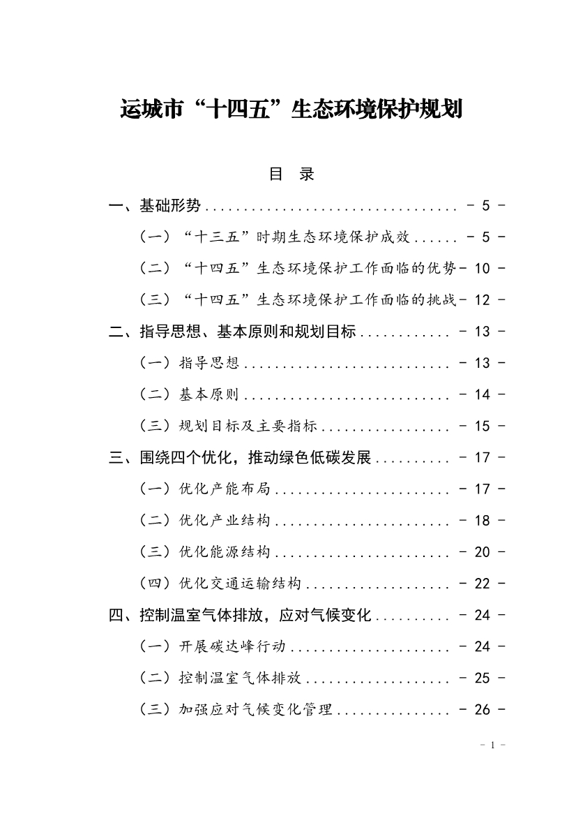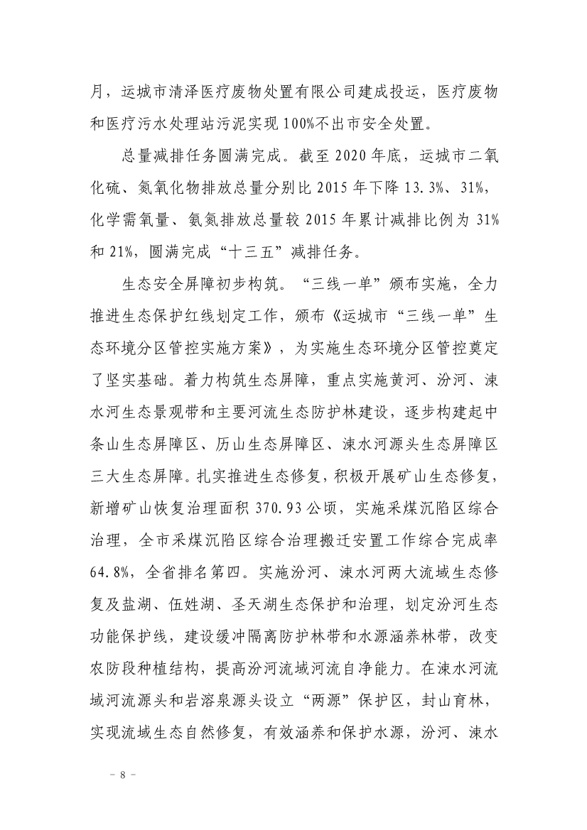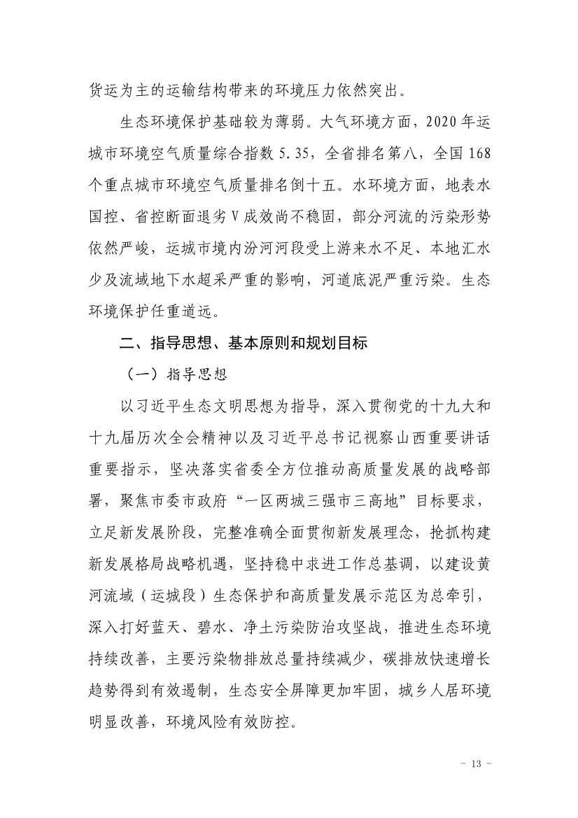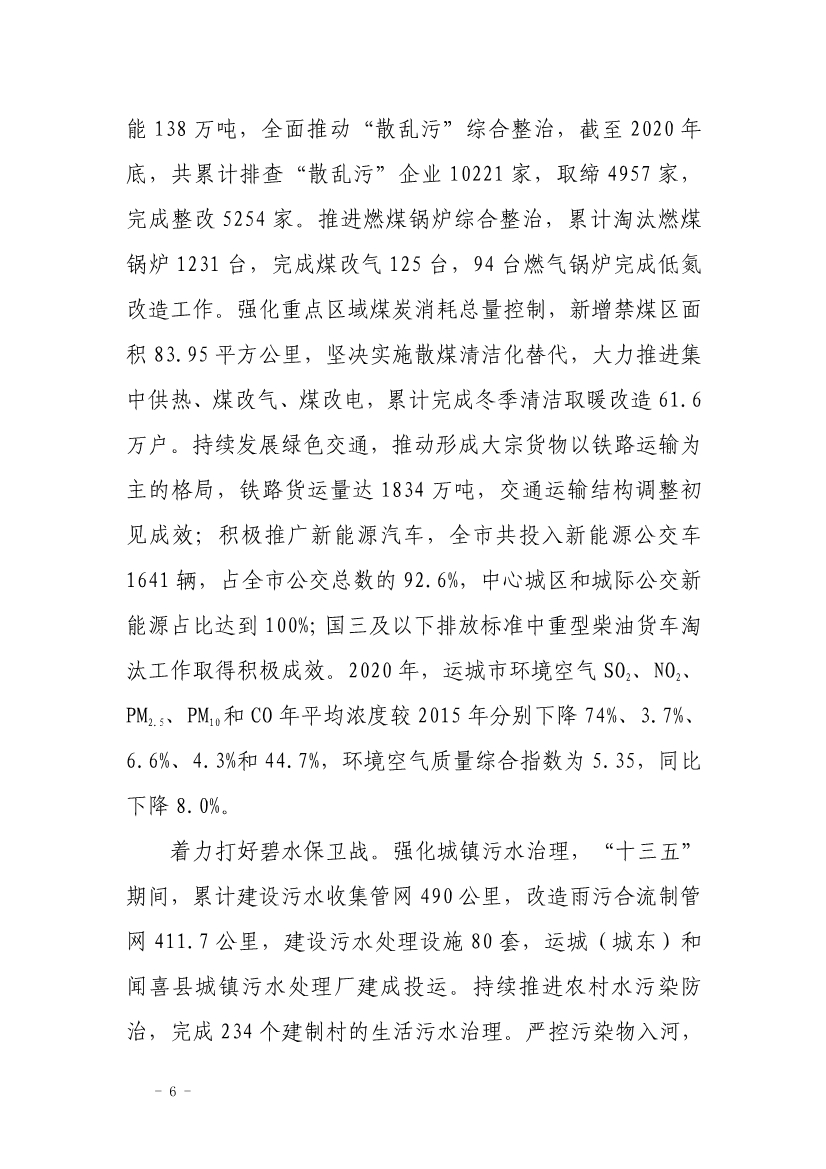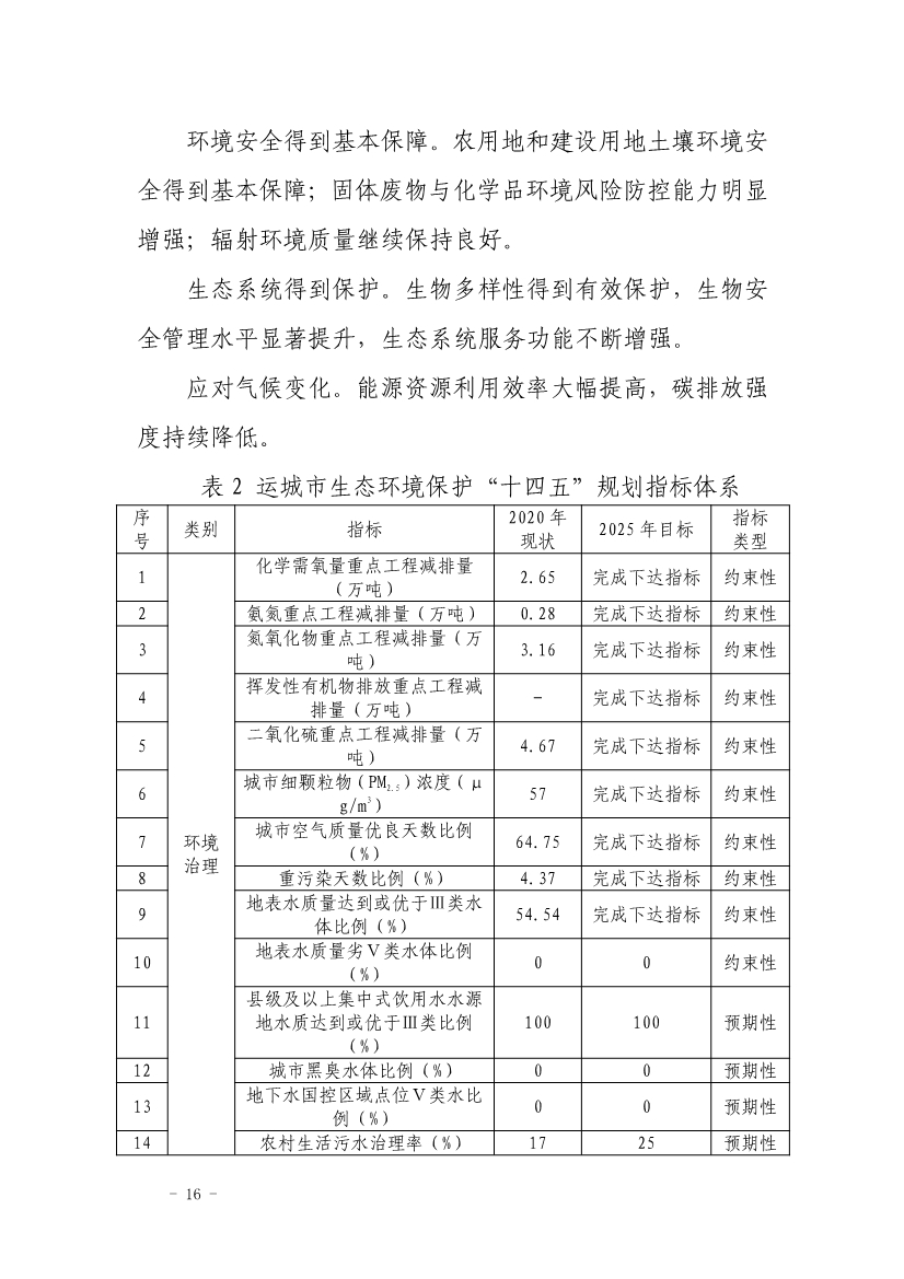 運城市“十四五”生態(tài)環(huán)境保護規(guī)劃