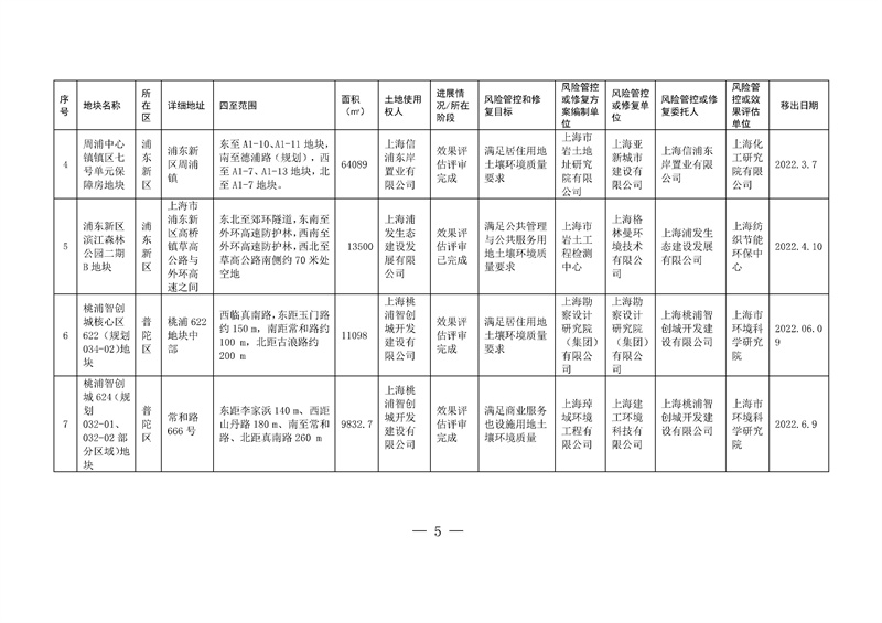 附件:1. 上海市建設(shè)用地土壤污染風險管控和修復名錄(2022年1月1日至2022年5月31日移出地塊名錄)