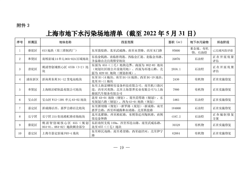 3. 上海市地下水污染場地清單(截至2022年5月31日)