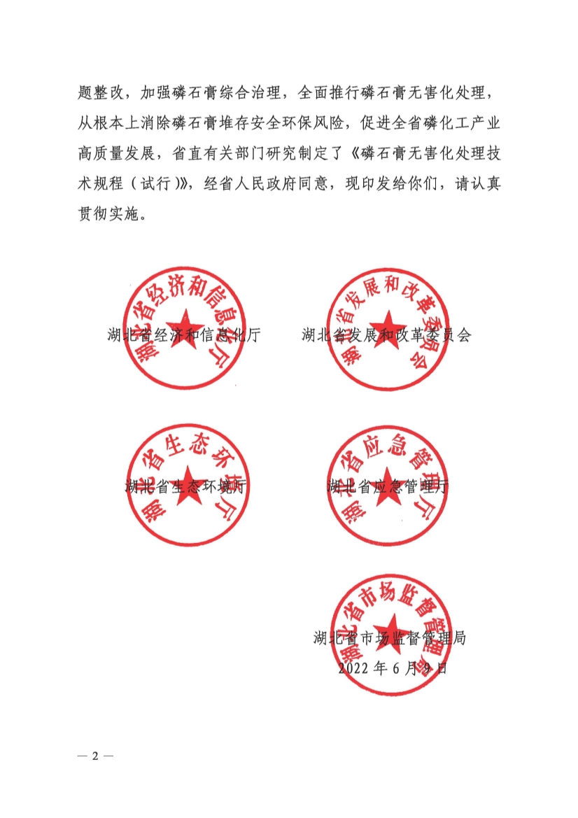 湖北省《磷石膏無(wú)害化處理技術(shù)規(guī)程(試行)》出臺(tái) 系我國(guó)首個(gè)磷石膏無(wú)害化綜合處理技術(shù)規(guī)程