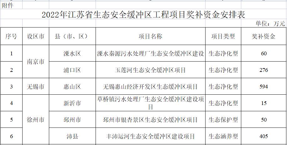 根據(jù)《江蘇省生態(tài)安全緩沖區(qū)工程試點補助辦法(試行)》(蘇環(huán)辦〔2021〕307號),經(jīng)研究,現(xiàn)將2022年江蘇省生態(tài)安全緩沖區(qū)示范項目獎補資金下達(dá)給你們,此項資金支出列入2022年政府收支分類科目“2110401生態(tài)保護”,詳見附件。有關(guān)事項通知如下: