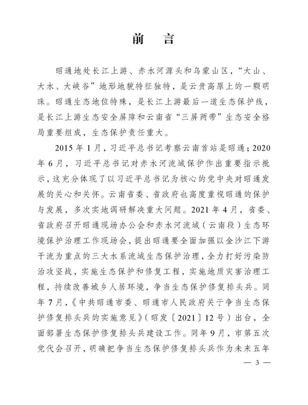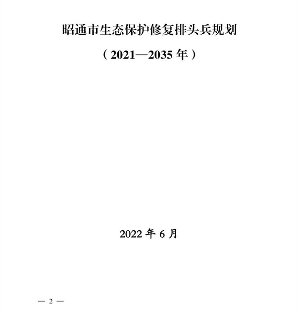 投資855億元實施285個重點項目 《昭通市生態(tài)保護(hù)修復(fù)排頭兵規(guī)劃(2021—2035年)》印發(fā)