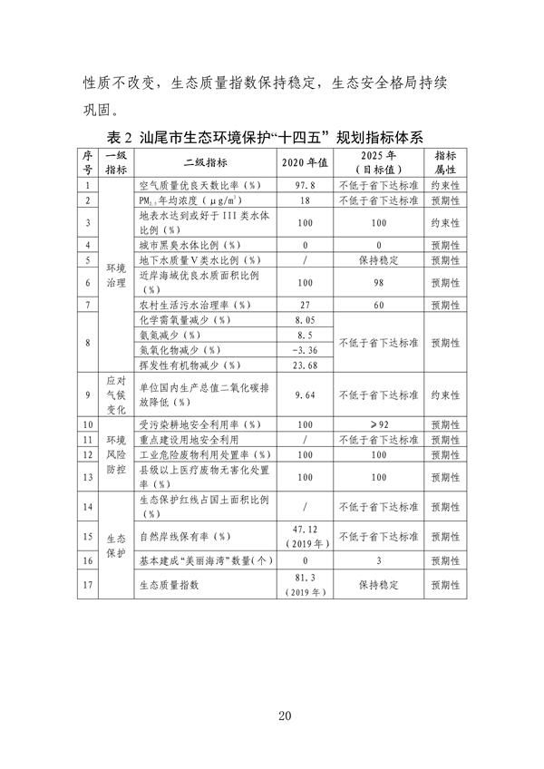 廣東省汕尾市生態(tài)環(huán)境局印發(fā)《汕尾市生態(tài)環(huán)境保護(hù)“十四五”規(guī)劃》,“十四五”具體目標(biāo)為: