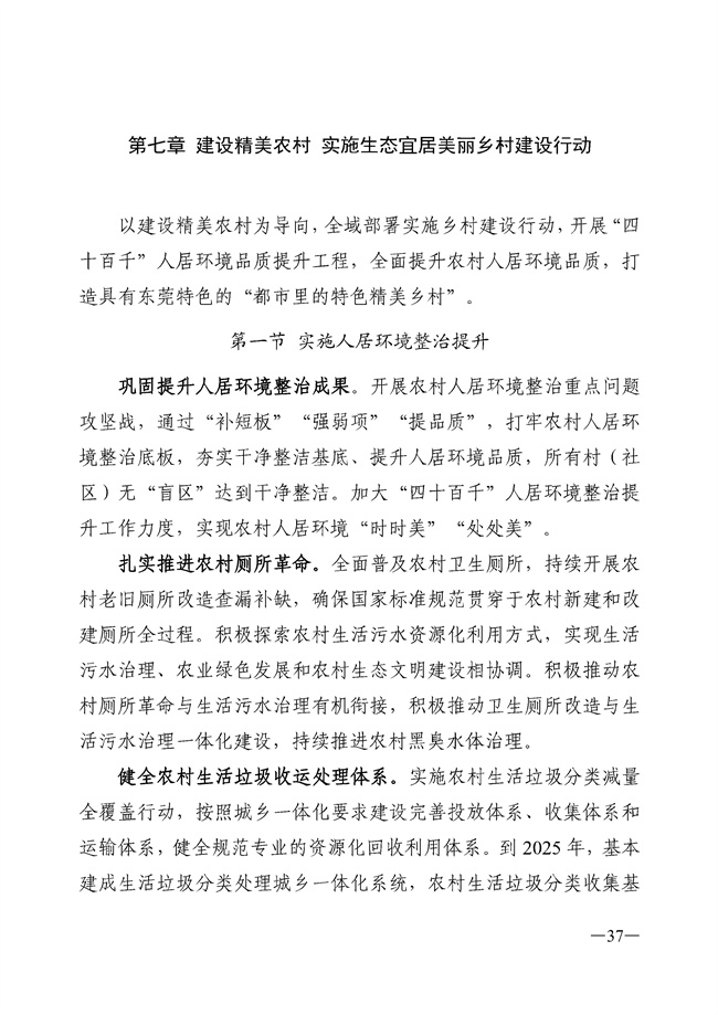 日前,東莞市人民政府辦公室關(guān)于印發(fā)《東莞市農(nóng)業(yè)農(nóng)村發(fā)展“十四五”規(guī)劃》的通知發(fā)布,該規(guī)劃指出,健全農(nóng)村生活垃圾收運處理體系。實施農(nóng)村生活垃圾分類減量 全覆蓋行動,按照城鄉(xiāng)一體化要求建設(shè)完善投放體系、收集體系和 運輸體系,健全規(guī)范專業(yè)的資源化回收利用體系。到 2025 年,基本建成生活垃圾分類處理城鄉(xiāng)一體化系統(tǒng),農(nóng)村生活垃圾分類收集基本實現(xiàn)全覆蓋。 開展農(nóng)村生活污水治理攻堅。以鎮(zhèn)街為單位編制農(nóng)村生活污水 治理規(guī)劃(或方案),合理選擇技術(shù)方案和治理模式,促進農(nóng)村生 活污水治理和衛(wèi)生改廁、黑臭水體整治工作銜接,優(yōu)先完成國考省 考斷面周邊區(qū)域、飲用水水源保護區(qū)等重點區(qū)域范圍的污水整治。詳情如下: