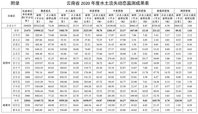 附錄 云南省2020年度水土流失動態(tài)監(jiān)測成果表 25